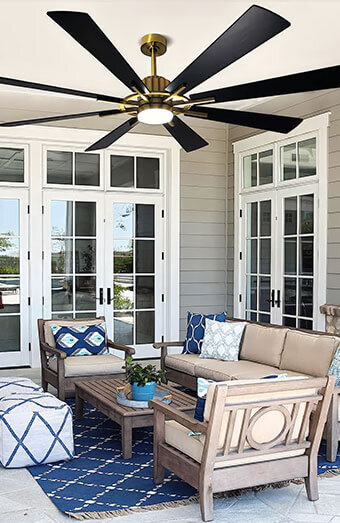 Weather-resistant ceiling fan installation for alfresco areas, patios, and verandas to enhance comfort in outdoor living spaces.